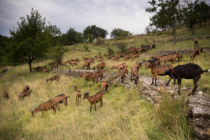 Installées sur les collines de Coux, au pied des grottes de la Jaubernie, nous élevons nos chèvres laitières en Agriculture Biologique. Tout le lait produit est transformé en fromages directement sur la ferme.