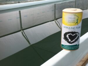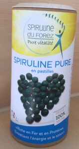 Dans l'environnement paisible du Forez, mes spirulines sont choyées pour leur bon développement dans les bassins d'eau douce abrités sous serre : eau de qualité controlée, dynamisée... sans utiliser d'OGM ni produits de traitements. Une fois pretes, je les recoltes puis les faits sechées juste à basse température pour bien préserver leurs précieux nutriments = des petites paillettes craquantes au gout tout doux prêtes à vous donner leurs bienfaits. A raison d'une cuillère à café par jour (3g) à parsemer sur vos aliments ou avaler directement, une boîte de 100g vous fera un mois de consommation.